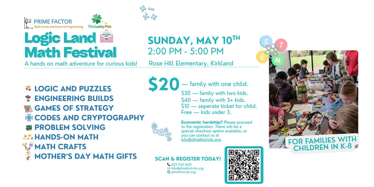Logic Land is organized by Prime Factor Math Circle and The Lucky Pen School, with the help of a wonderful team of volunteers.
