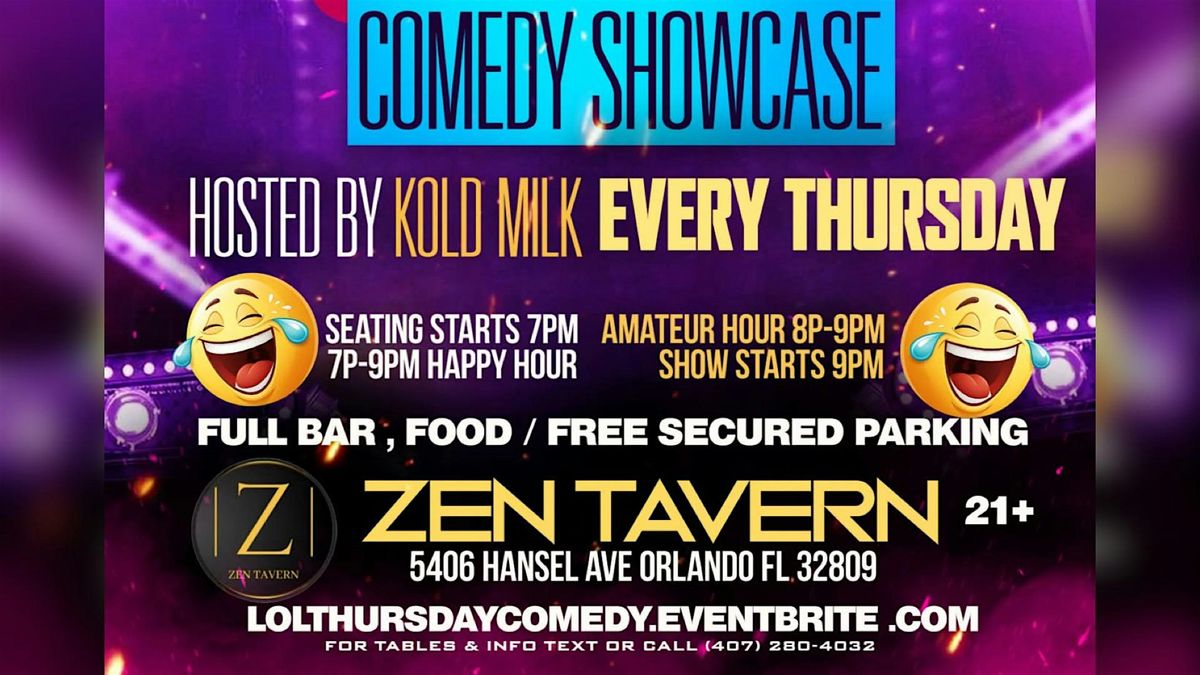 Welcome to LOL THURSDAYS at Zen Tavern-Orlando's newest Thursday night stop for Comedy; starting February 5th, 2026.