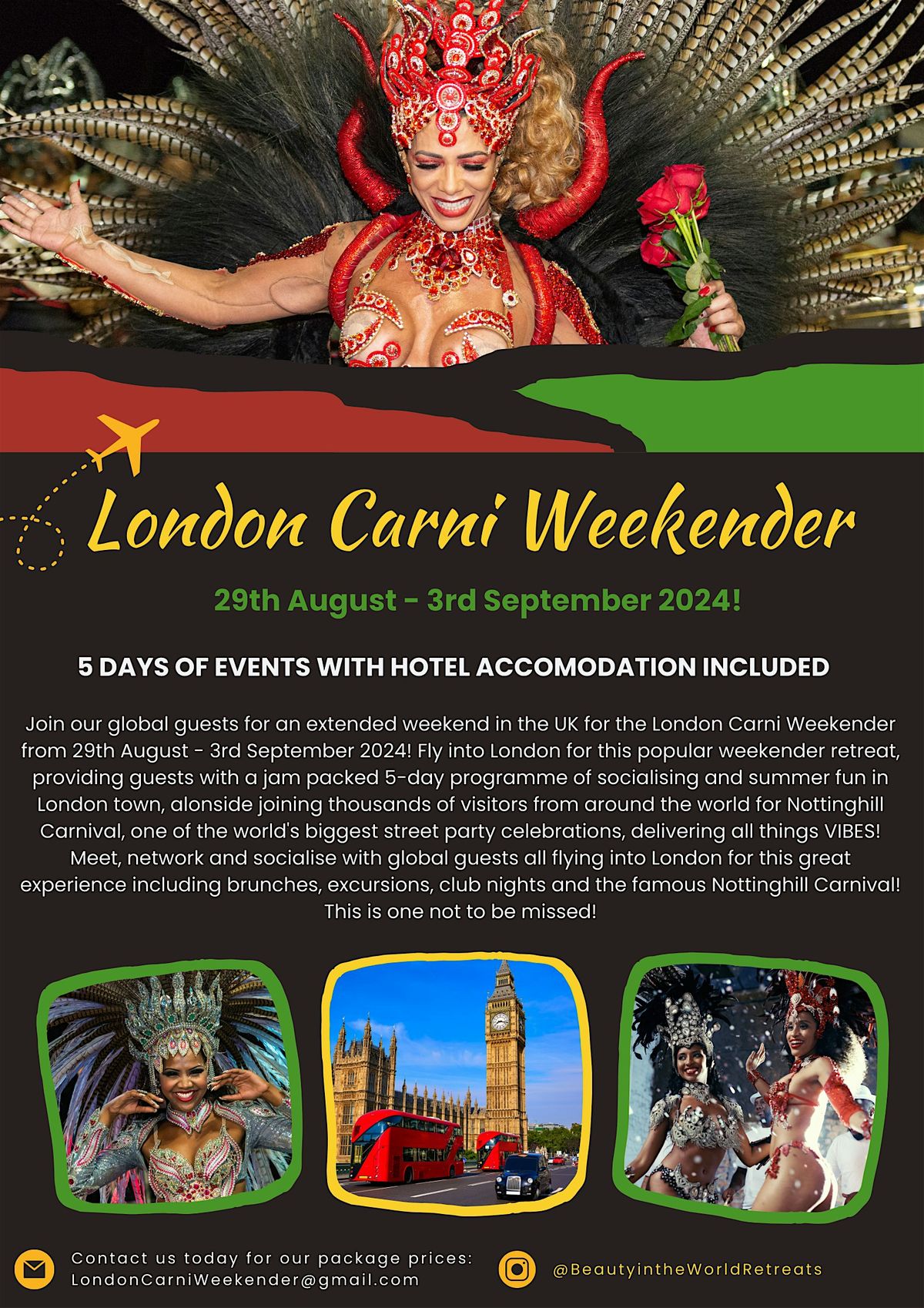 Grab your best party group and join us for the London Carni Weekender 6-day retreat package, 6 days of celebration, networking and socialising in London, including 2 days at Nottinghill Carnival on the Bank Holiday weekend, as well as brunches, paint parties and more!