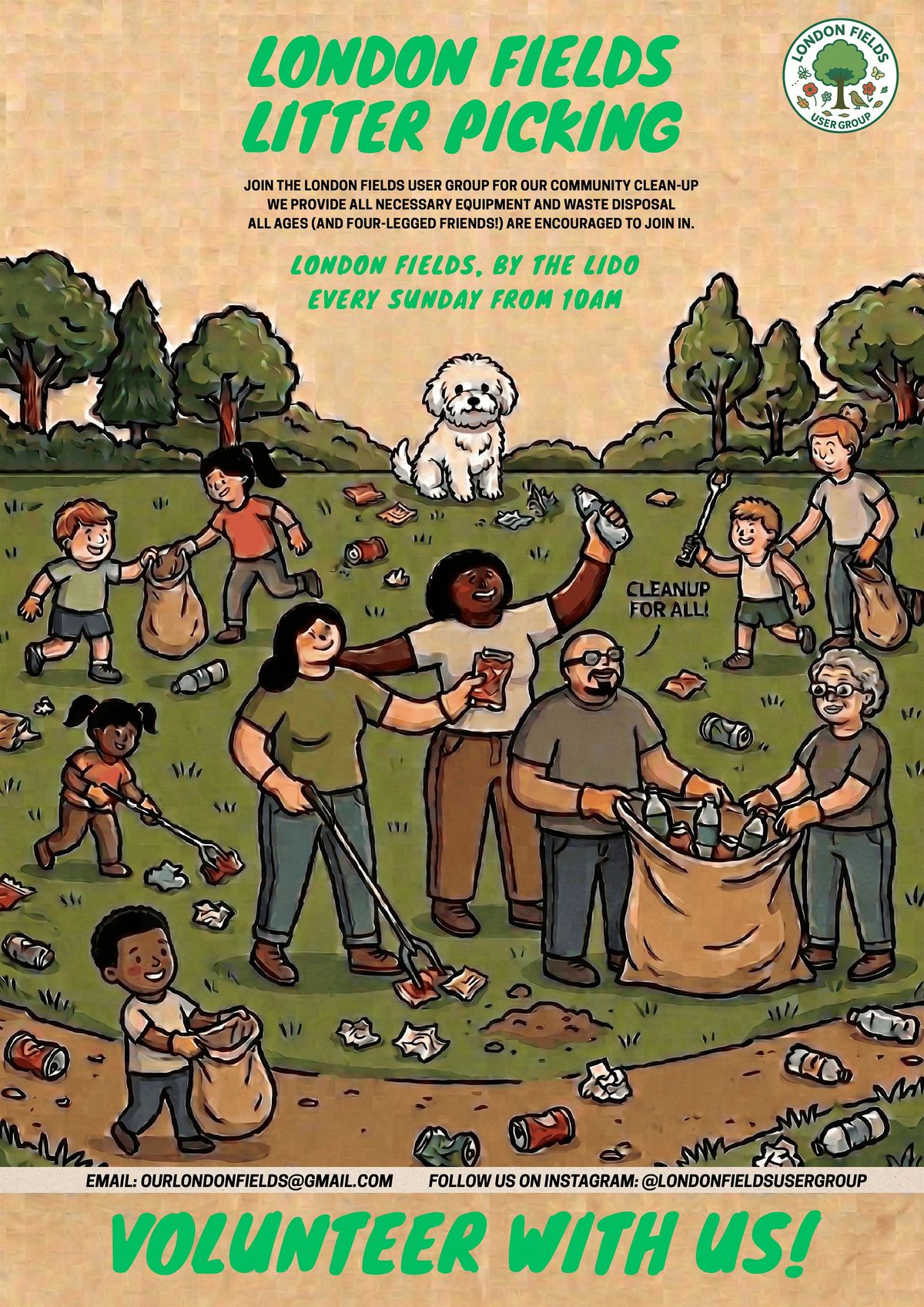 The Community Litter Pick is organised by the London Fields User Group (also known as LFUG).