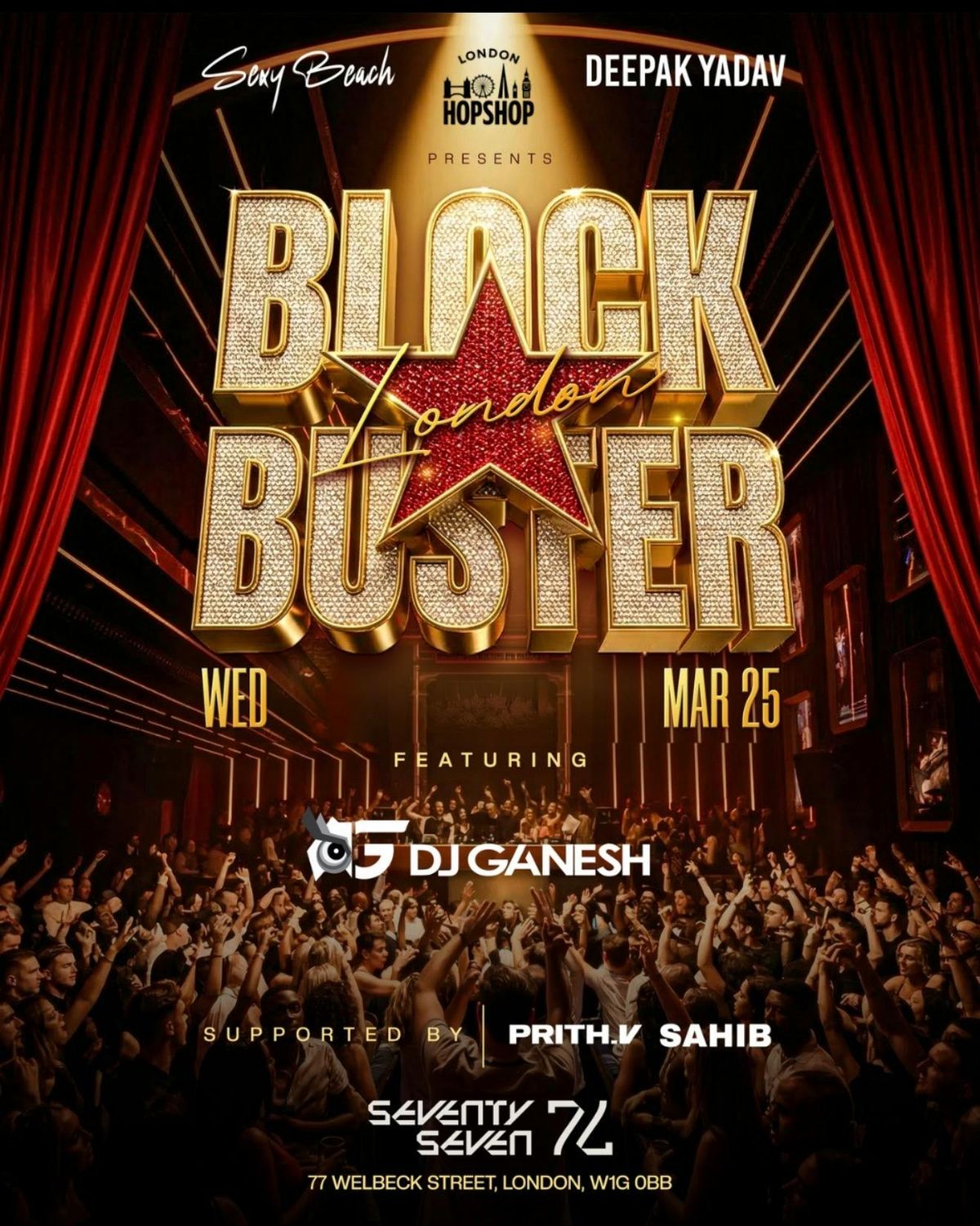 LONDON HOPSHOP X SEXY BEACH X DEEPAK YADAV PRESENTS : BLOCKBUSTER LONDON FT DJ GANESH 25/03