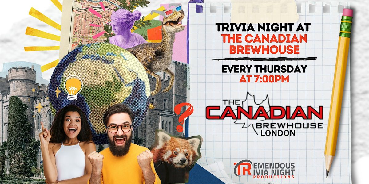 We're proud to be bringing Tremendous Trivia to The Canadian Brewhouse every THURSDAY. Our show combines General Knowledge Trivia and Name That Tune into a 6 round show with something for everyone! Come down to show off those big brains, and win big prizes at this wildly entertaining night!
