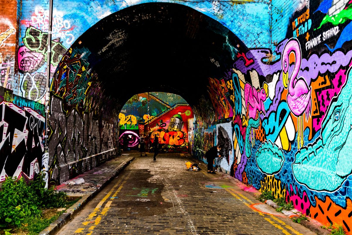 Start your tour with large-scale pieces defining the area’s street art landscape. See bold stencils, paste-ups, and tags in one of Shoreditch’s most densely painted areas. Explore trendy spots known for fresh art and rotating murals.