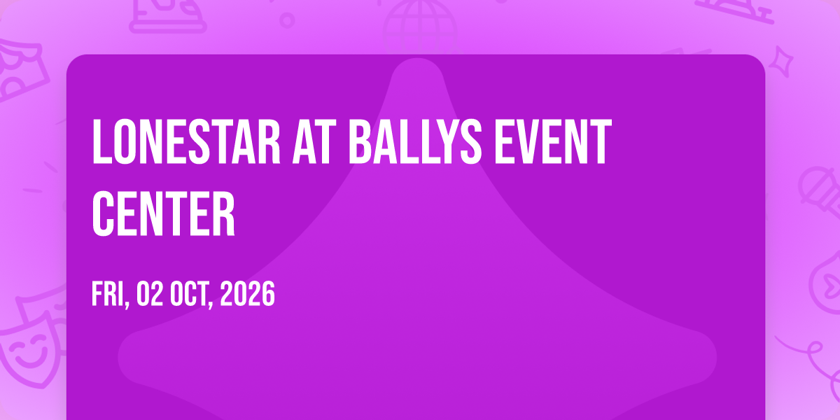 ✨ Enter a world of endless possibilities at Lonestar at Ballys Event Center, where every moment tells a story! 🏛️ The stunning Ballys Event Center in vibrant Lincoln, RI transforms into a realm of wonder on October 2nd, 2026 at 08:00 PM. 🌟 They have crafted an experience that goes beyond the ordinary, combining elements of surprise, delight, and pure entertainment. Every detail has been thoughtfully considered to ensure your journey with us is nothing short of extraordinary. 🎯 Join fellow adventure seekers and memory makers in this celebration of imagination and innovation. 🎊 Reserve your spot today and be part of something truly special!