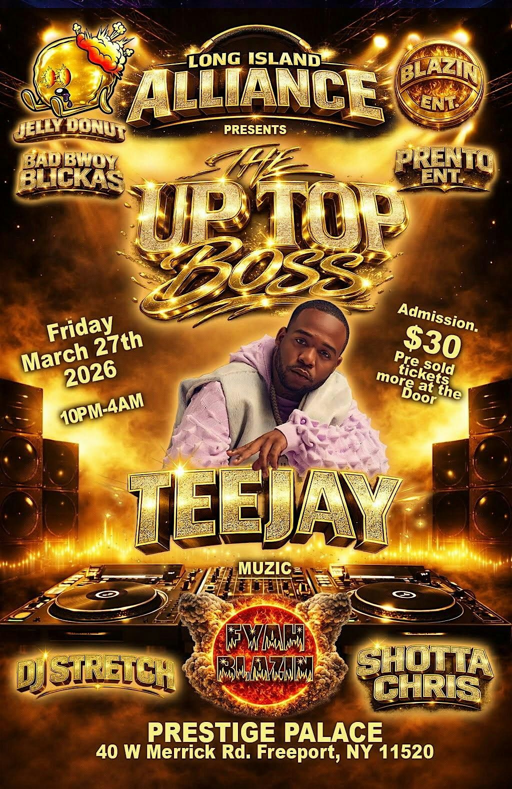 Long Island alliance presents a live performance from TEE-JAY the UP TOP BOSS live at prestige palace. Good vibes Good music by Long Island