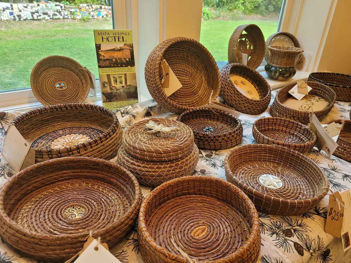 Join us in person for a fun and hands-on workshop with Denine Jones! You'll learn the art of weaving beautiful baskets using long leaf pine needles. Perfect for beginners or anyone looking to try something new and creative. Don't miss out on this unique chance to craft your own natural masterpiece!