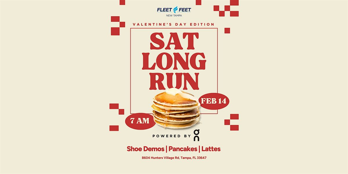 Join us at Fleet Feet New Tampa for our monthly Saturday Long Run: Valentine’s Day Edition, powered by On. Whether you’re running with your valentine, your bestie, or just here for the pancakes (no judgment- they are guaranteed to be delicious), this is the perfect way to start your Saturday morning.