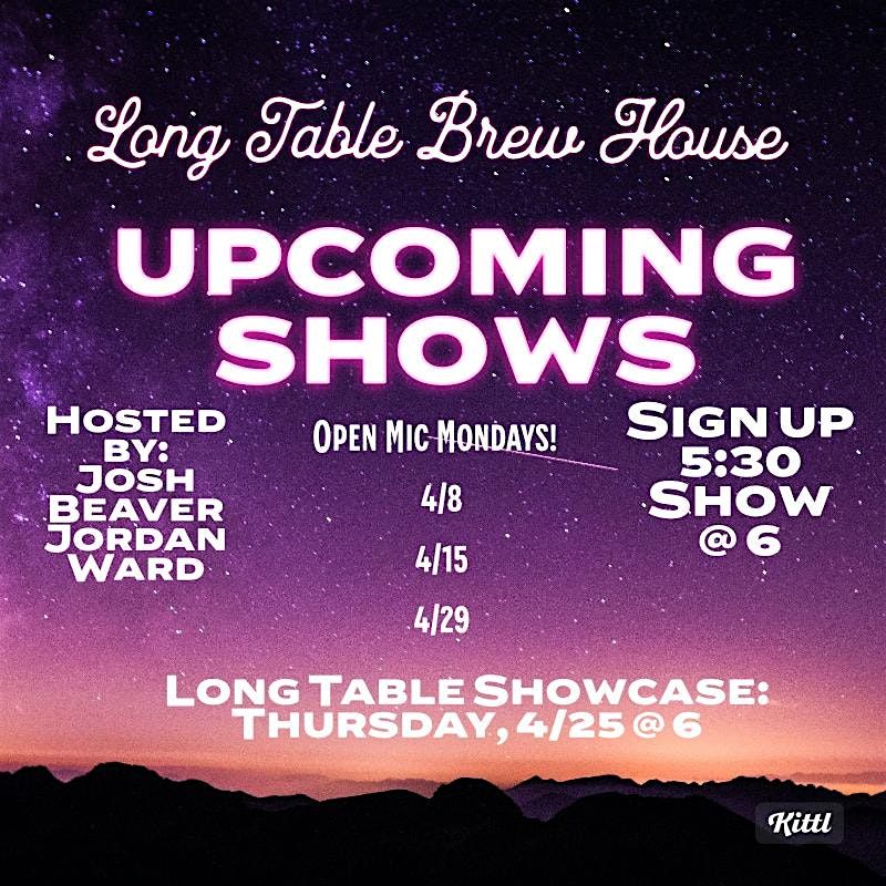 Join us for a night of laughs and fun at the Long Table Open Mic! RSVP to let us know you're interested in going up. We start at 6 and each comic gets at least 5 minute sets. The physical sign up list is dropped off at 5:30!