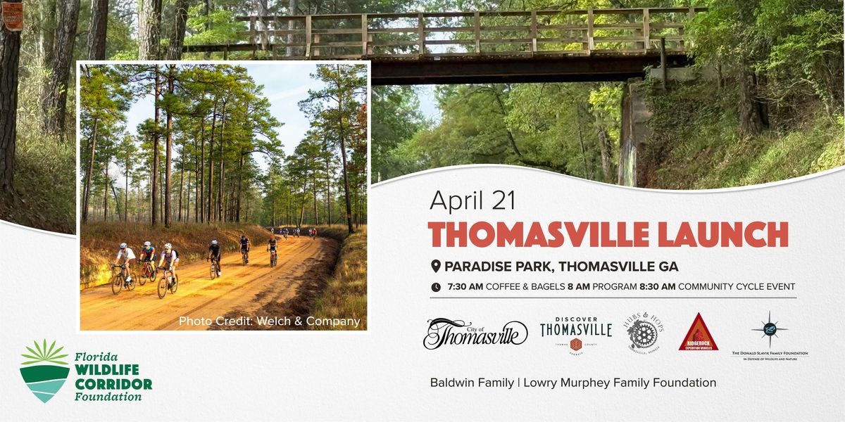 Then join the four elected officials as they cycle from Thomasville towards Florida to begin their Expedition from the Red Hills to the Gulf — a five-day adventure to hike, cycle, and paddle through the Florida Wildlife Corridor. A film crew will be along to document the journey.