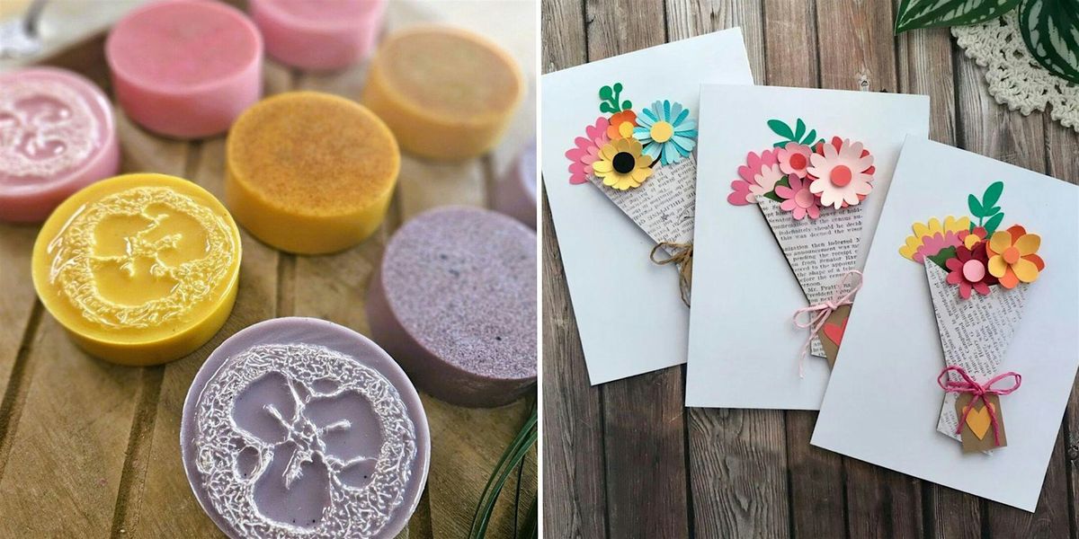 As your soaps cure, work on a set of handcrafted greeting cards to send to friends and family, and enjoy the time with like-minded crafters. Walk away with your pair of soaps inside a protective fabric bag plus your set of handmade cards!