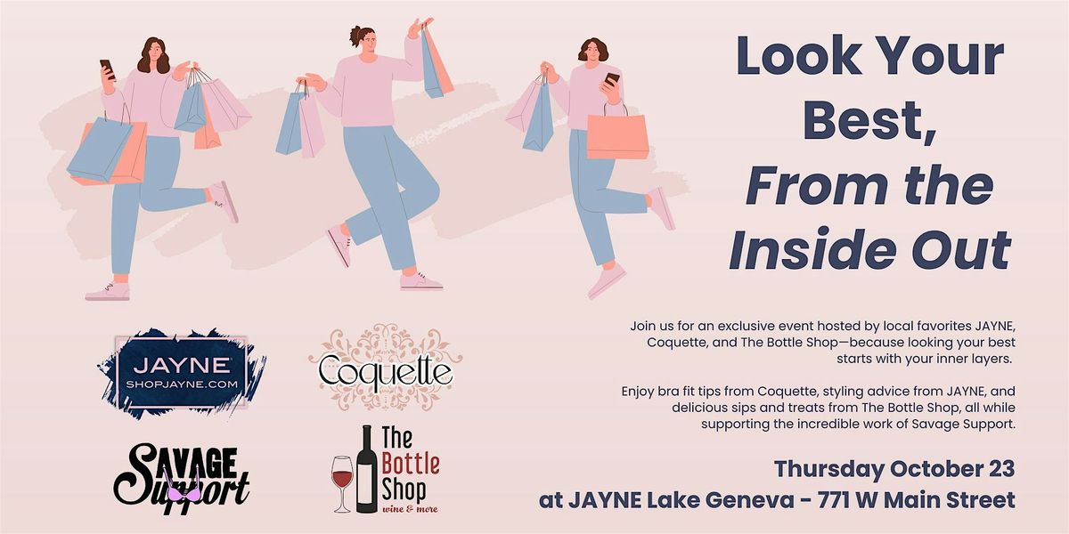 Enjoy bra fit tips from Coquette, styling advice from JAYNE, and delicious sips and treats from The Bottle Shop, all while supporting the incredible work of Savage Support.