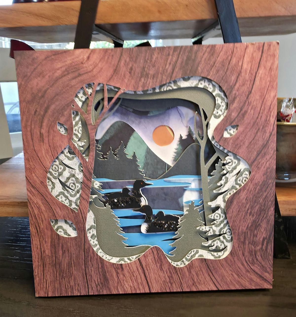 This charming 3D paper art project is perfect for lake lovers, nature enthusiasts, and anyone who appreciates the beauty of our Minnesota loons. Your design features graceful loons gliding across the water, brought to life through twelve pre‑cut layers that add depth, texture, and visual interest.