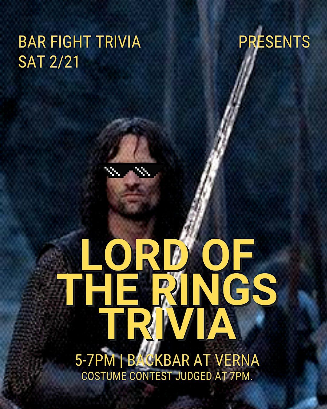 Join us for an epic night of Lord of the Rings Trivia at Backbar (at Verna)! Dress up and test your knowledge of Middle-earth lore, characters, and unforgettable moments in a fun, laid-back setting. Whether you're a hobbit, wizard, or elf, come hang out in person and see if you have what it takes to claim the trivia crown.