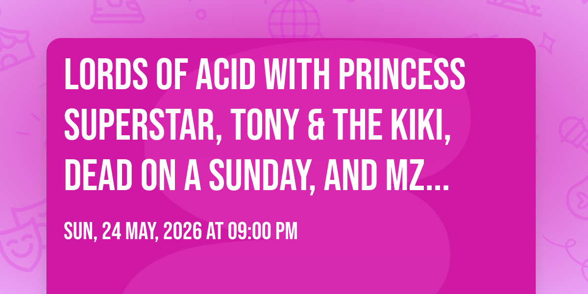 📍 Location: 29.4486, -98.4877🎉 Welcome to Lords Of Acid with Princess Superstar, Tony & The Kiki, Dead On A Sunday, and Mz Neon, where dreams come alive and possibilities are endless! 🏛️ Join us at Paper Tiger - San Antonio in the heart of San Antonio, TX for an event that defies expectations. 📅 On May 24th, 2026 at 09:00 PM, be part of something truly extraordinary as we bring together innovation, entertainment, and pure magic. ✨ Every aspect has been carefully designed to ensure an unforgettable experience for all our guests. Whether you're seeking adventure, inspiration, or simply a break from the ordinary, this event promises to deliver beyond your wildest dreams. 🎊 Prepare for a journey into the extraordinary!