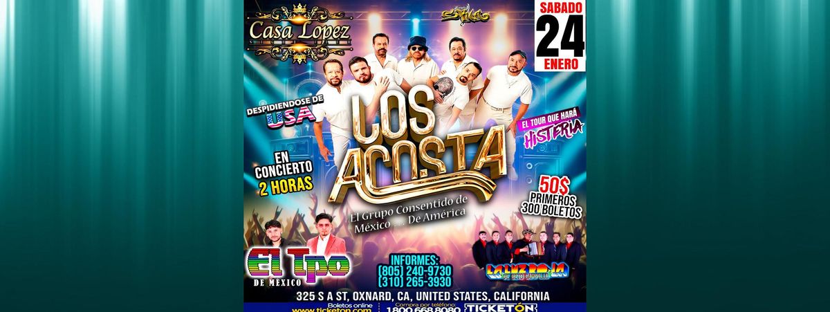 **Attend LOS ACOSTA @ CASA LOPEZ at Casa Lopez, Oxnard, CA, United States** Join us for LOS ACOSTA @ CASA LOPEZ. It's going to be a fun and relaxed event with great music and good company. A perfect way to spend your evening. **Event Details:** * **Location:** Casa Lopez, Oxnard, CA, United States Claim your ticket to be at the forefront of exciting innovation. #LOSACOSTA@CASALOPEZ #event #exciting #OxnardEvents #CAEvents