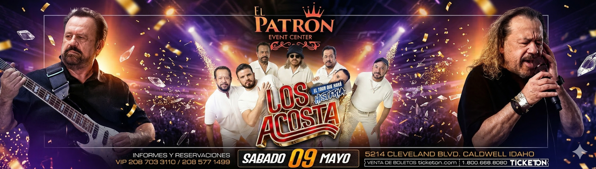 Join us for 'LOS ACOSTA EN CALDWELL', a groundbreaking exciting event at El Patron Event Center, Caldwell, ID, United States. This event is a cornerstone of innovation in the industry. Engage with experts, explore new horizons, and elevate your understanding of the exciting landscape. Book your attendance today and be part of something extraordinary. #LOSACOSTAENCALDWELL #event #exciting #CaldwellEvents #IDEvents