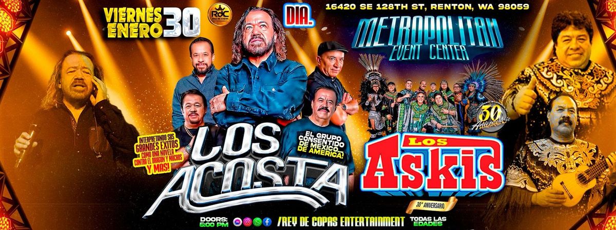 Don't miss LOS ACOSTA EN SEATTLE happening at Metropolitan Banquet Hall , Renton, WA, United States on 2026-01-30T20:00:00-08:00. A great evening with good music and a laid-back atmosphere awaits you. Invite your friends for a night out! **Event Details:** * **Location:** Metropolitan Banquet Hall , Renton, WA, United States Claim your ticket to be at the forefront of exciting innovation. #LOSACOSTAENSEATTLE #event #exciting #RentonEvents #WAEvents
