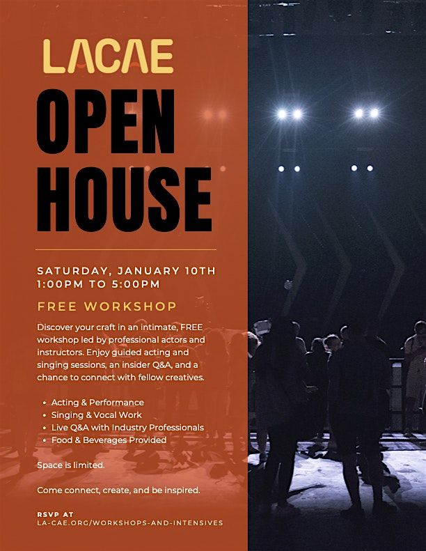 The Los Angeles Community of Acting and Entertainment is opening our doors for an afternoon of free workshops, Q&A, connection, and community. Whether you’re curious about our programs, thinking about joining the next ACT III cohort, or just want to see what we’re building, you’re invited. And, even if you have taken a workshop or two with us, you can still take advantage of the free mini workshops, free pizza, and, good hang.