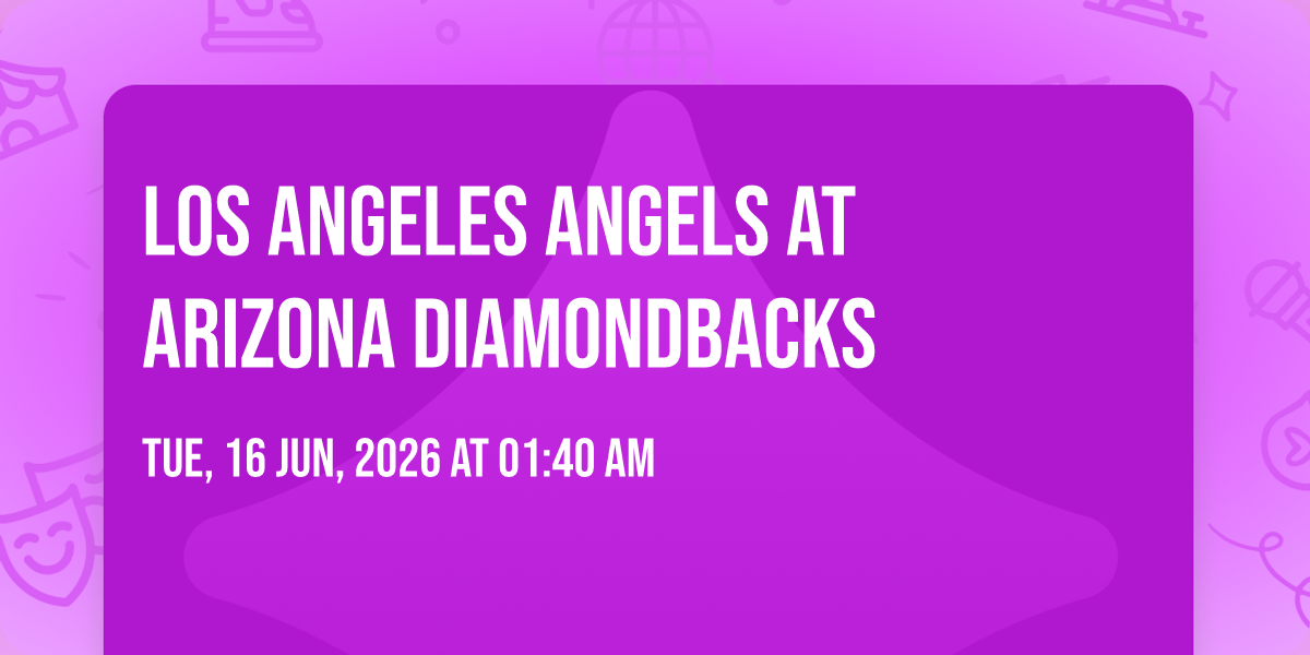 π Location: 33.4453, -112.067π Welcome to Los Angeles Angels at Arizona Diamondbacks, where the impossible becomes possible and dreams take flight! ποΈ Join us at Chase Field in the heart of Phoenix, AZ for an event that will redefine your expectations. π On June 16th, 2026 at 01:40 AM, witness the transformation of space and time into something truly magical. β¨ It's a curated experience combining the best of innovation, entertainment, and community spirit, creating moments that will be remembered for years to come. Whether you're a first-time visitor or a seasoned enthusiast, prepare to be amazed. π Book now to ensure your place in this unforgettable experience!