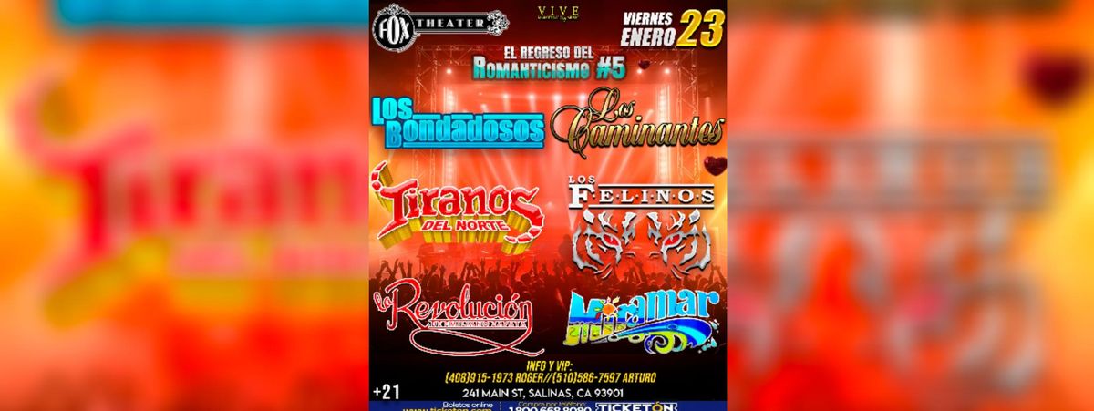 Experience the exciting event 'LOS BONDADOSOS, LOS CAMINANTES & MAS' at Fox Theater, Salinas, CA, United States. This must-attend gathering promises an unforgettable experience for all attendees. Join us for a day filled with innovation, networking, and inspiration. Book your attendance today and be part of something extraordinary. #LOSBONDADOSOS,LOSCAMINANTES&MAS #event #exciting #SalinasEvents #CAEvents