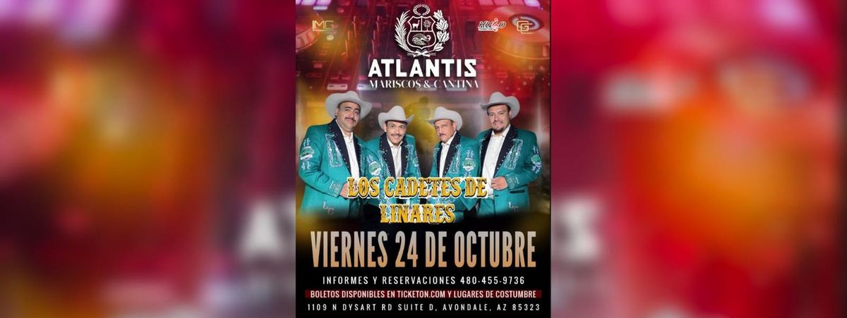 Don't miss 'LOS CADETES DE LINARES ', the premier exciting event happening at Atlantis Mariscos & Cantina , Avondale, AZ, United States. This event showcases the best talent and expertise in the field. Immerse yourself in a world of opportunities and cutting-edge ideas. Claim your ticket to be at the forefront of exciting innovation. #LOSCADETESDELINARES #event #exciting #AvondaleEvents #AZEvents