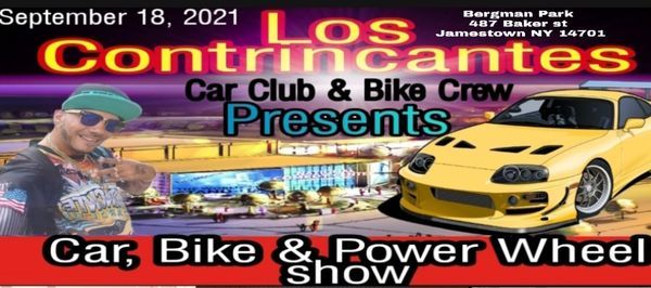 Los Contrincantes Car Club and Bike Crew of Jamestown and Buffalo NY Presents to you an event that u will not want to miss! For the 1st time ever in Jamestowns history we will be bringing a Chipeo Competition. This is a Car/Motorcycle/ and Power Wheel Show. You will be able to experience a music competition that most of u have never seen in your life.