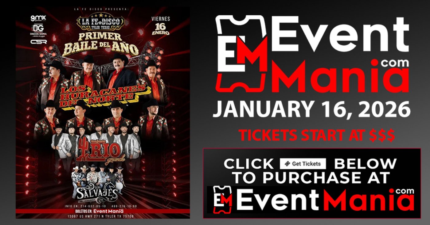Compra tus boletos aqui: https://eventmania.com/events/los-huracanes-del-norte-y-mas-tyler-tx-2026-01-16/V00a/seat