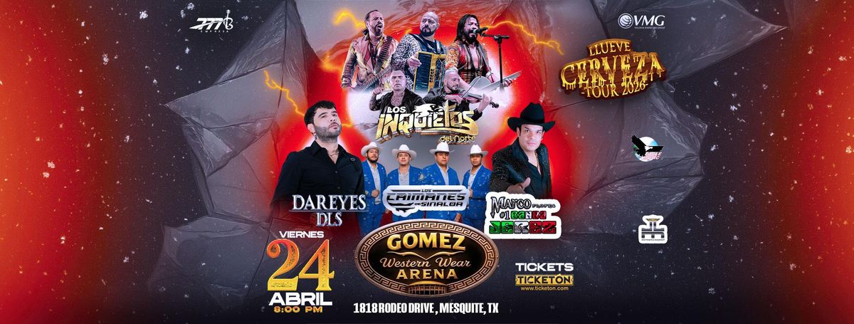 Don't miss LOS INQUIETOS DEL NORTE, DAREYES DLS & MAS happening at Gomez Western Wear Arena, Mesquite, TX, United States on 2026-04-24T19:00:00-06:00. A great evening with good music and a laid-back atmosphere awaits you. Invite your friends for a night out! **Event Details:** * **Location:** Gomez Western Wear Arena, Mesquite, TX, United States Book your attendance today and be part of something extraordinary. #LOSINQUIETOSDELNORTE,DAREYESDLS&MAS #event #exciting #MesquiteEvents #TXEvents