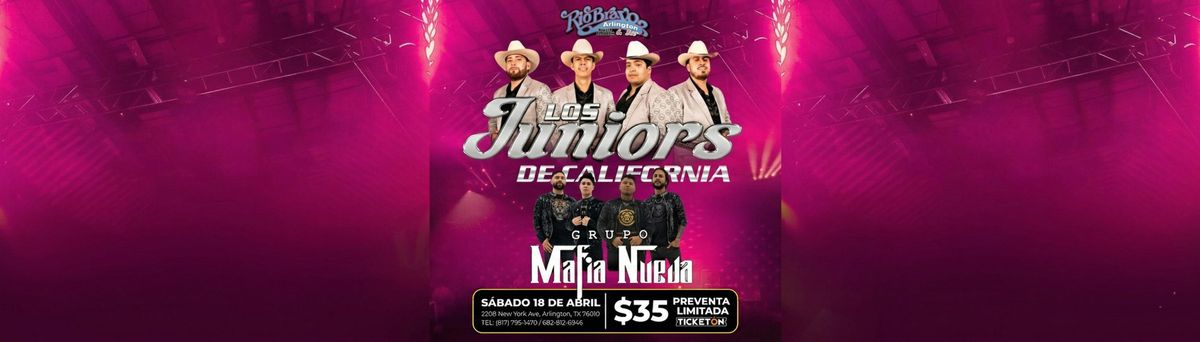 **Attend Los Juniors De California & Grupo Mafia Nueva at Rio Bravo Arlington, Arlington, TX, United States** Join us for Los Juniors De California & Grupo Mafia Nueva. It's going to be a fun and relaxed event with great music and good company. A perfect way to spend your evening. **Event Details:** * **Location:** Rio Bravo Arlington, Arlington, TX, United States Book your attendance today and be part of something extraordinary. #LosJuniorsDeCalifornia&GrupoMafiaNueva #event #exciting #ArlingtonEvents #TXEvents