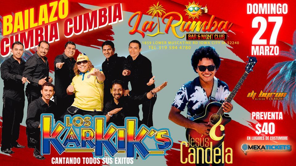 DOMINGO 27 DE MARZO LLEGAN CANTANDO TODOS SUS EXITOS((((LOS KARKIS Y JESUS CANDELA))))BOLETOS DE PREVENTA $40 DE VENTA YA EN LUGARES DE COSTUMBRE LA RUMBA NIGHT CLUB 1859 lower muscatine rd IOWA CITY IA 52240 MESAS VIP AL 319 594 4780