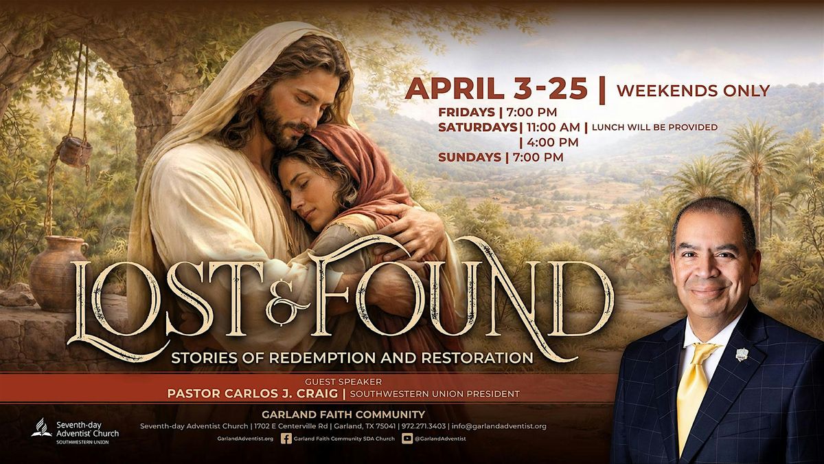 Join us for “Lost & Found: Stories of Redemption and Restoration”, a powerful weekend series hosted by Garland Faith Community Seventh-day Adventist Church in Garland.