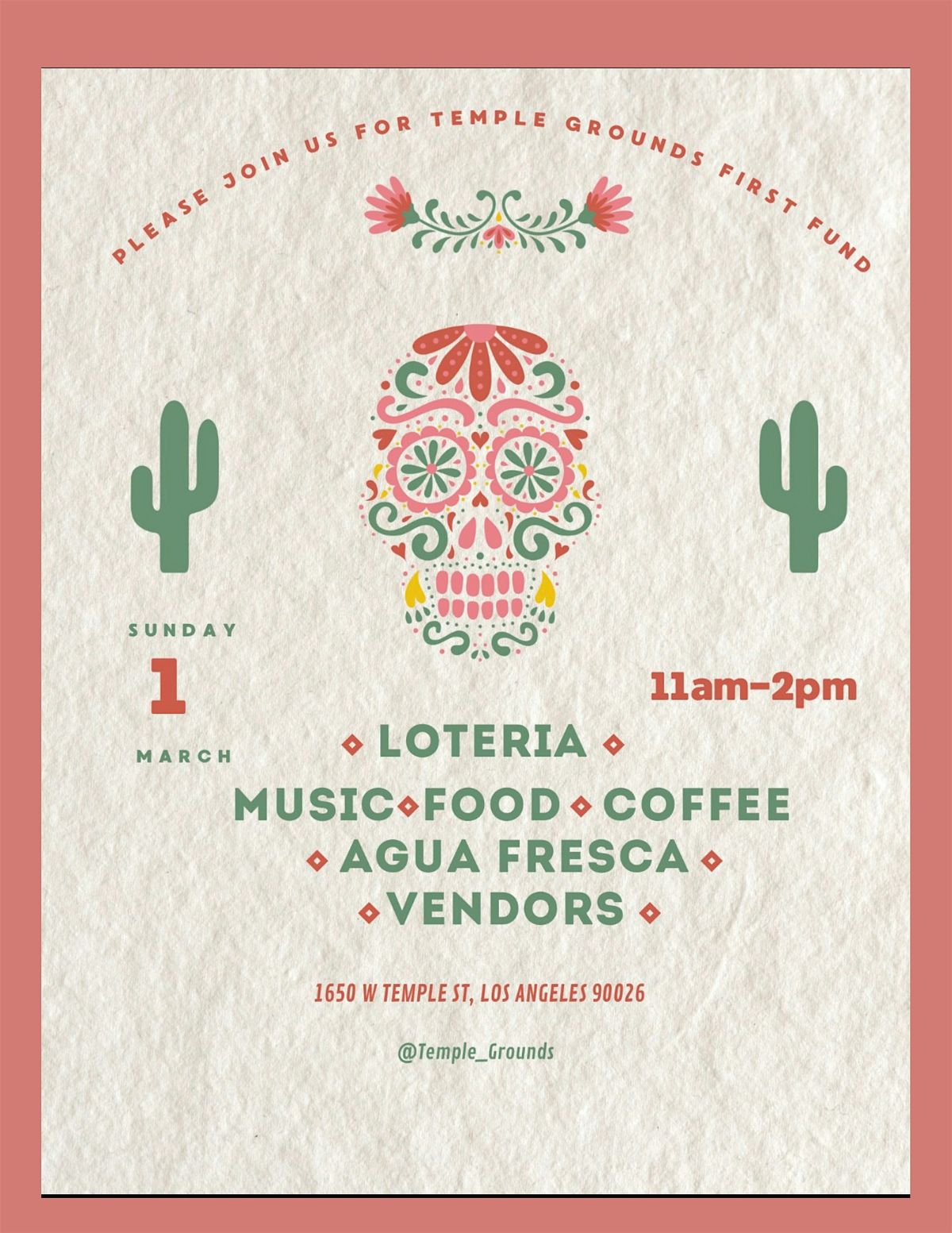 Join us for a fun and relaxed morning of Loteria and great coffee at 1650 W Temple St! It’s happening on March 1, 2026 at 11:00 AM (Pacific Time). Whether you’re a Loteria pro or just curious, come hang out, enjoy some laughs, and sip on your favorite brew. Bring your friends and let’s make it a chill, memorable day together. See you there!