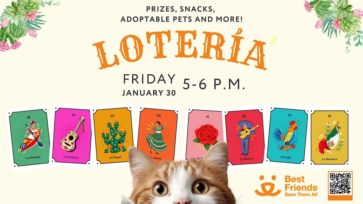 Looking for a fun night out? Bring your friends and family to Lotería Night for an evening full of games, laughter, and furry friends! Play a few rounds of Lotería (Mexican bingo) for the chance to win exciting prizes, meet adorable adoptable pets, and explore all the amazing things we offer for pet lovers in the community.