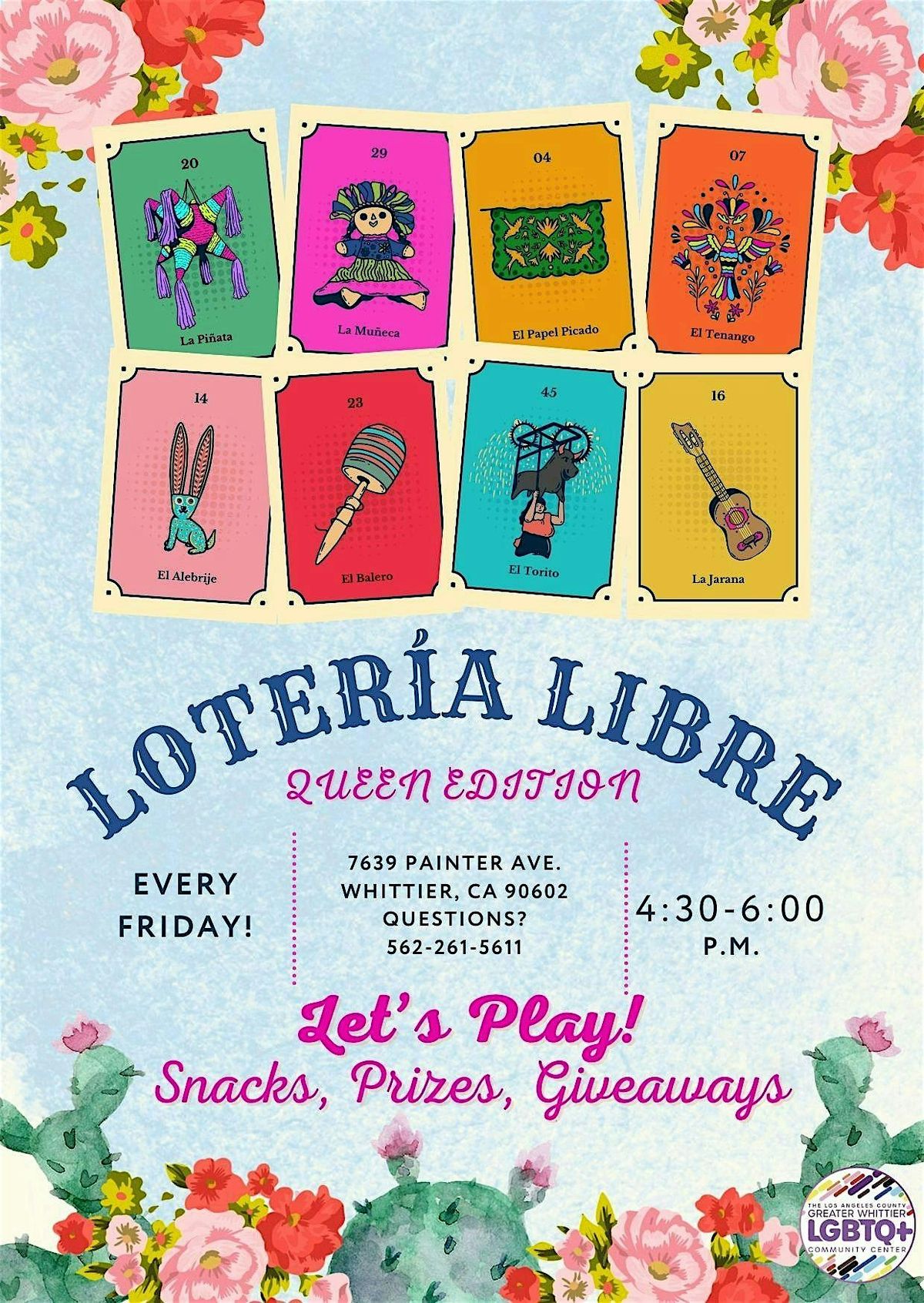 We are thrilled to announce the launch of our Loteria Nights here at the Greater Whittier LGBTQ+ Community Center! This fun & interactive support group will be EVERY FRIDAY from 4:30pm-6pm and snacks and prizes will be provided as well! The Loteria Night support group is designed to create a safe, inclusive, and welcoming space for everyone in the community! To learn more about the Greater Whittier LGBTQ+ Community Center and its services and to learn more about the various support groups, you can visit the center at 7639 Painter Ave., Whittier, CA, or contact them at (562)261-5611.