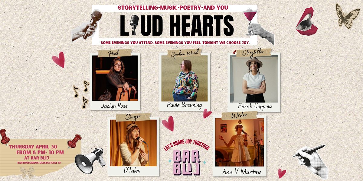 Loud Hearts is a new recurring evening of poetry, storytelling and music. Rooted in the ancient tradition of gathering around shared words. Each edition, we meet around one theme. Tonight, that theme is Joy.