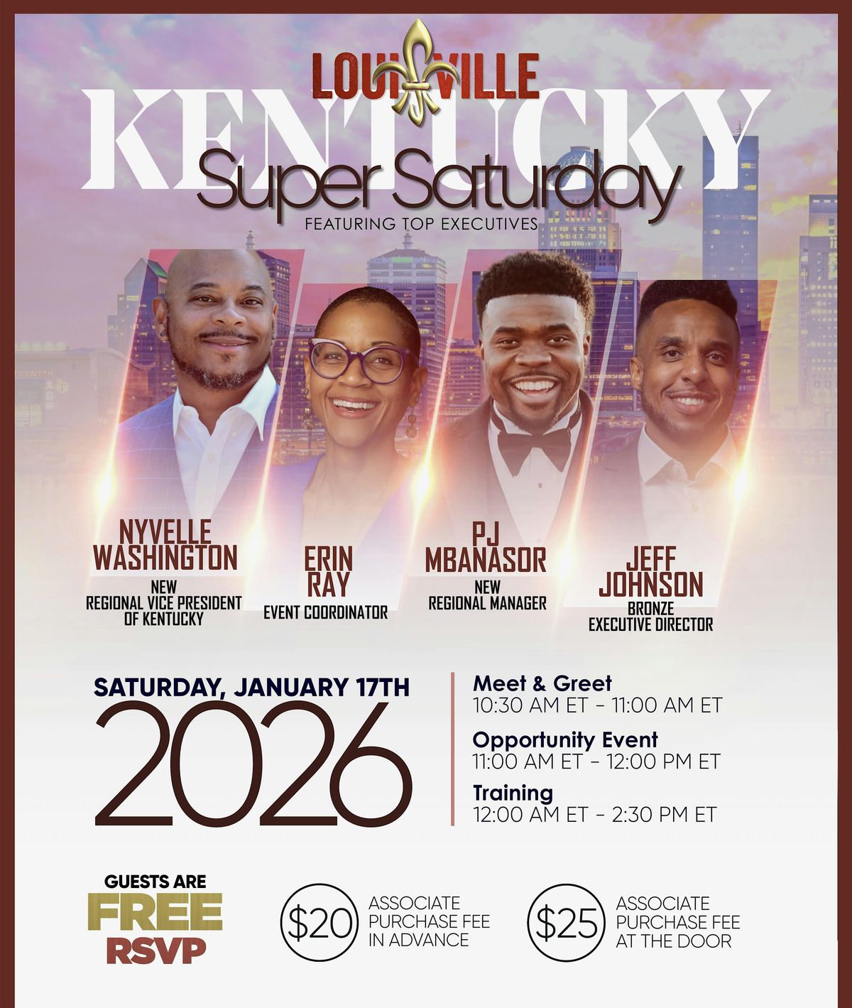 Welcome to the Louisville 2026 Big Kick OFF Event! Join us at Four Points by Sheraton Louisville Airport on January 17, 2026 at 10:30 AM (Eastern Time) for an exciting day filled with fun activities, networking opportunities, and insightful sessions. This event is your chance to connect with like-minded individuals, learn from industry experts, and kick off the new year with a bang! Don't miss out on this fantastic opportunity to be part of something special. See you there!