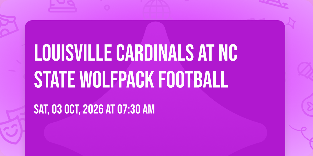 π Location: 35.801, -78.719π Step into a world of wonder at Louisville Cardinals at NC State Wolfpack Football, where extraordinary moments await! ποΈ Located at Carter-Finley Stadium in dynamic Raleigh, NC, this event will become the talk of the town. π Join us on October 3rd, 2026 at 07:30 AM for a celebration that defies the ordinary. β¨ This curated experience brings together the best of entertainment, culture, and community spirit. Every detail has been thoughtfully planned to ensure an unforgettable experience for all our guests. π― Take advantage of this opportunity to be part of something special. π Early registration is recommended as space is limited!