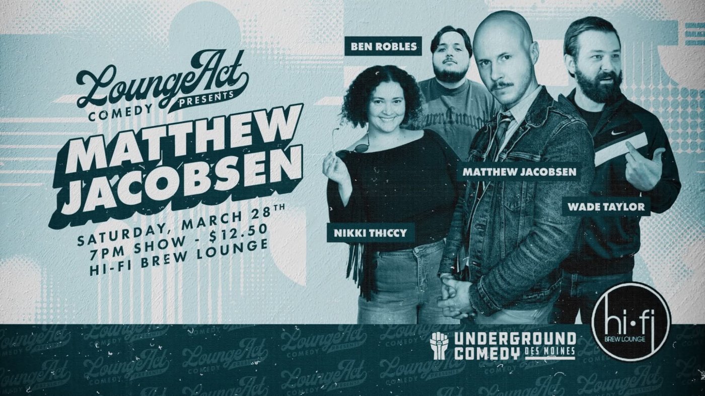 After multiple sold out shows, Lounge Act Comedy at HiFi is back with the one and only Matty Jakes himself: Matthew Jacobsen! Matthew Jacobsen comes armed with an array of stories, voices and faces. A performer on stages nationwide, Matt won the 2024 Funniest Person in Iowa contest, and received the Nate Cockerill Stage Performance Award at the 2022 Cleveland Comedy Festival. Come see why!