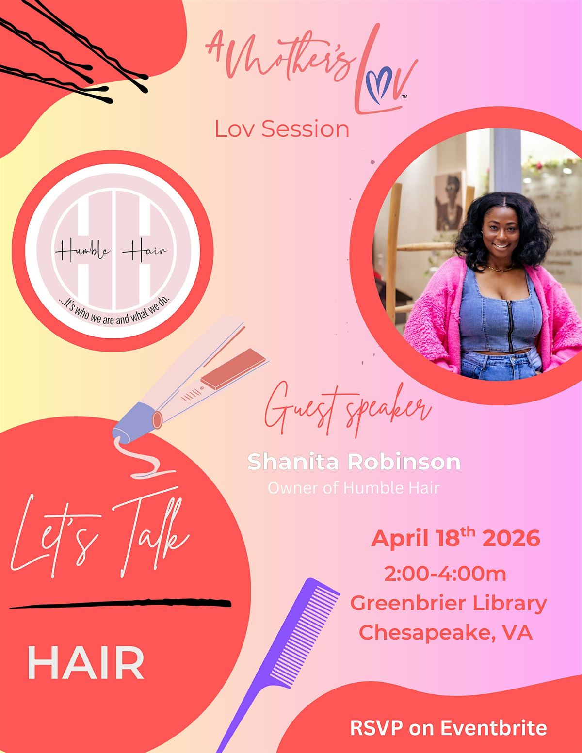 Join us for our upcoming Lov Session, Let’s Talk Hair, where we’ll explore not only healthy hair care but the deeper connection between hair, identity, and healing for women. This empowering conversation will create space to release old narratives, embrace our crowns, and walk away rooted in confidence and self-love.