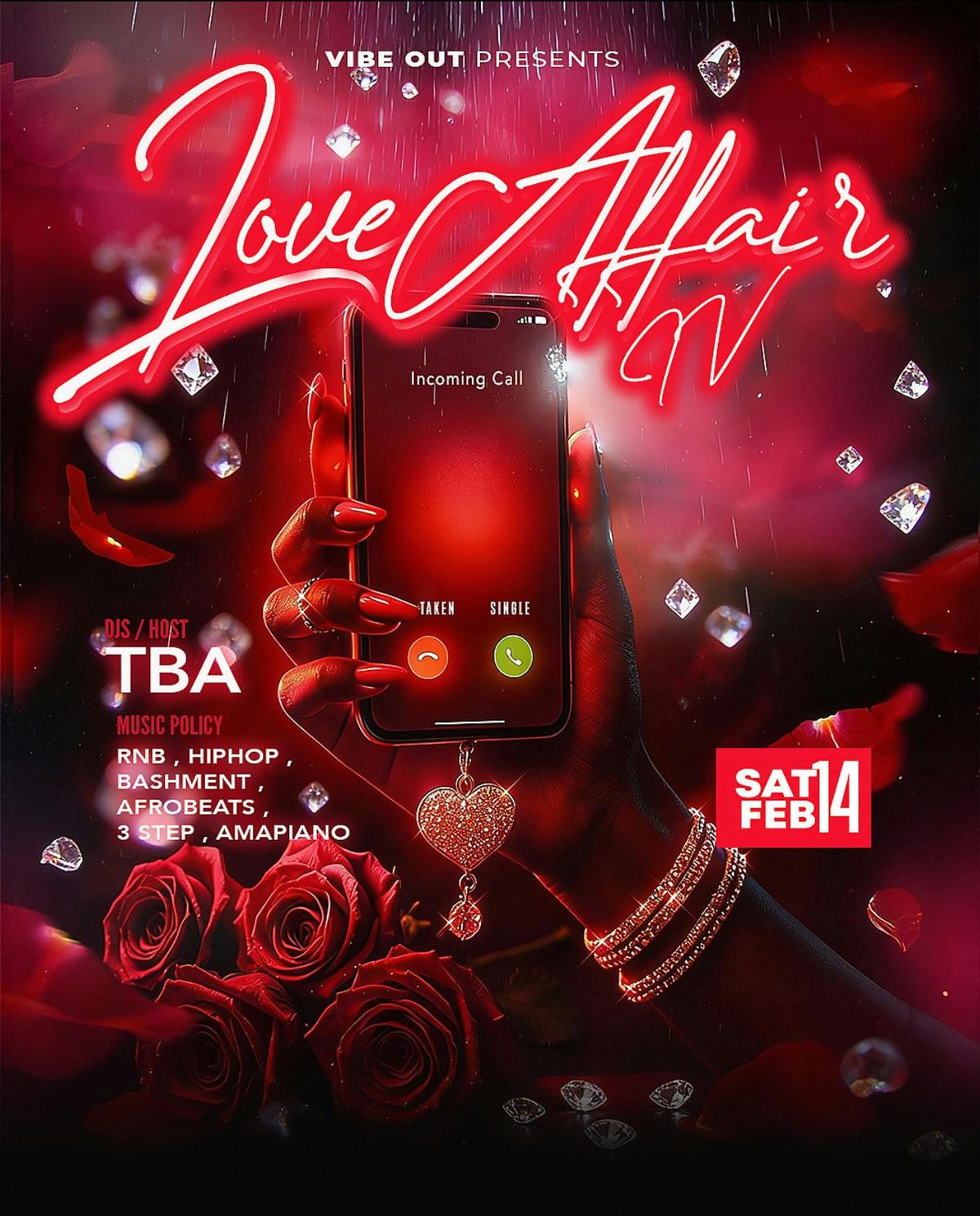 This 14th February 2025, step into a world where desire meets elegance as Vibe Out invites you to experience Love Affair IV in Birmingham.From the moment you arrive, expect high energy, elite vibes, and undeniable chemistry filling the room. This is a night designed for connection, confidence, and movement where the music sets the mood and the dancefloor tells the story.