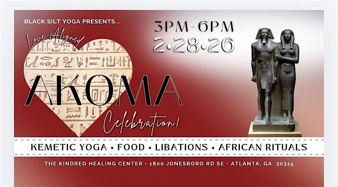 Join Black Silt Yoga®️ LLC for a special "day date" of aligning melanated divine masculine & feminine energies with your partner or spouse. We are celebrating the African origins of love and AKOMA(heart), by connecting Kemetic Yoga™️ and African traditions in a unique soulmating ceremony.