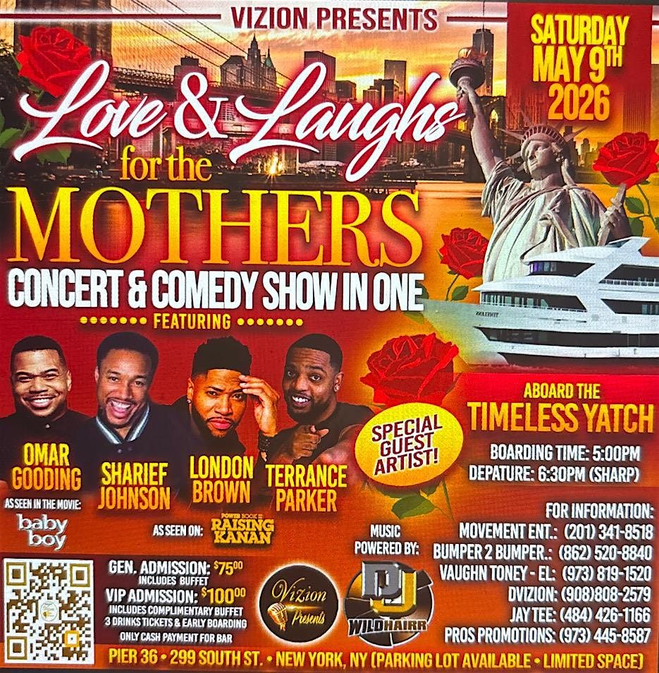 Join us for Love & Laughs for the Mothers, a special Concert and Comedy Experience happening aboard the luxurious Timeless Yacht — the perfect way to celebrate Mother’s Day weekend in style.