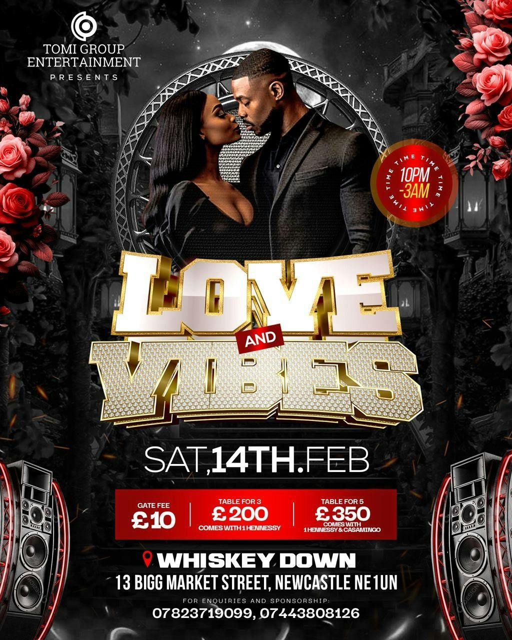 ❤️🔥 LOVE & VIBES – Valentine’s Special 🔥❤️Get ready for a night of pure love, rhythm, and unforgettable vibes as Tomi Group Entertainment presents LOVE & VIBES — the ultimate Valentine’s weekend experience.
