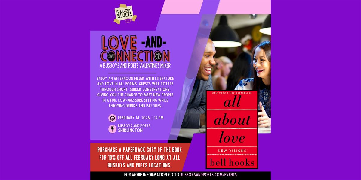 This Valentine’s Day, join us for Love and Connections: A Busboys and Poets Valentine’s Mixer—a speed-dating–style mixer designed for making all kinds of connections, from friendship and community to creative and romantic sparks.