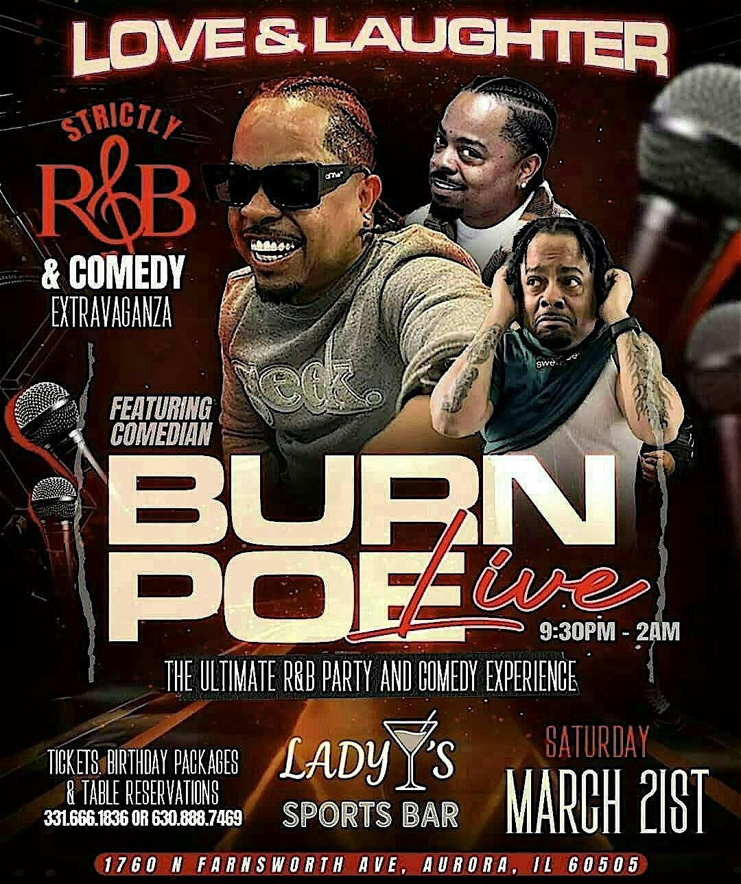 Join us in person for an unforgettable night packed with the smoothest & greatest R&B tunes, indescribable vibes and side-splitting stand up comedy from comedian BURN POE.