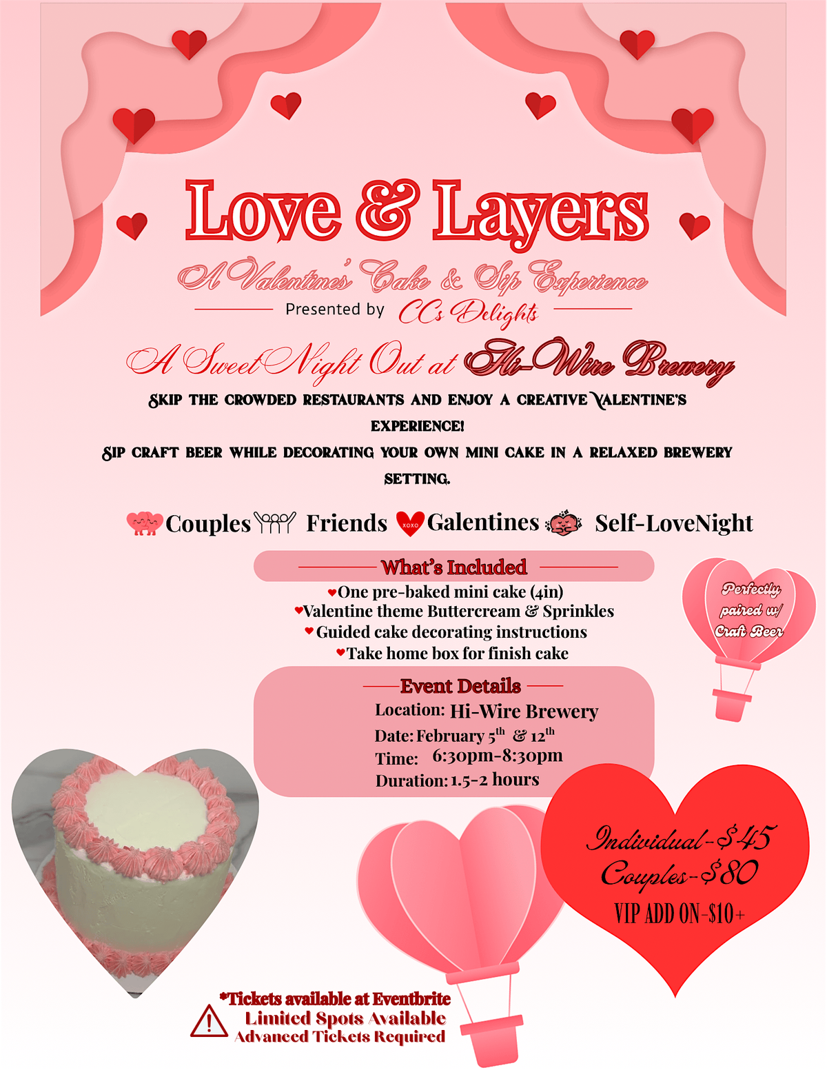 Join us for Love & Layers, where guests decorate their own mini cake while sipping craft beer in a relaxed brewery setting.
