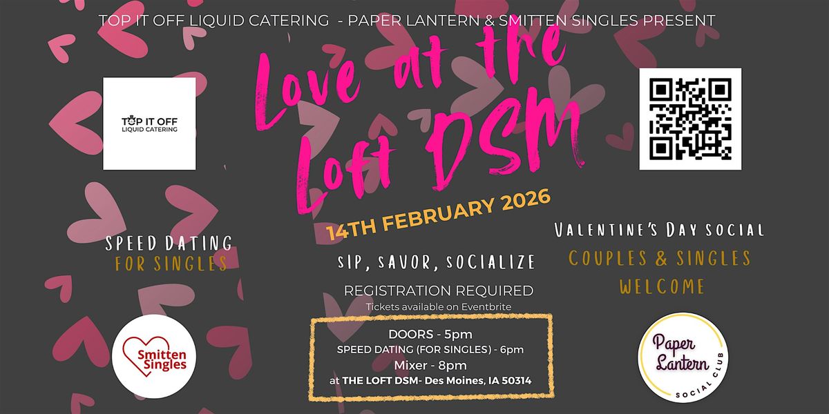 Spark some magic this Valentine's Day! 💕Tired of swiping left on love? Get ready for an unforgettable evening of laughs, real connections, and maybe even a little romance in a fun, relaxed atmosphere at the stylish Loft DSM!