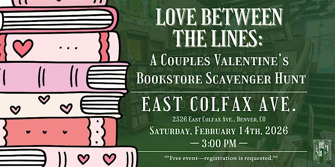 Join us for Love Between the Lines, a playful and intimate couples experience inside Tattered Cover bookstore. Part date night, part scavenger hunt, and part love story on Saturday, February 14th at 3:00 pm at our Colfax location!
