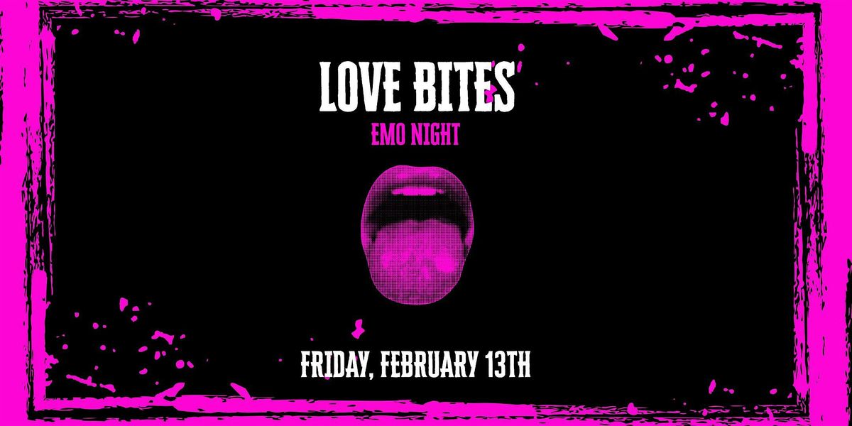 Love Bites is our emo night takeover on Friday, Feb 13th from 8–11PM, featuring a live DJ spinning all your favorite emo hits all night long. Come sing your heart out, cry a little (or a lot), and lean fully into the feels.
