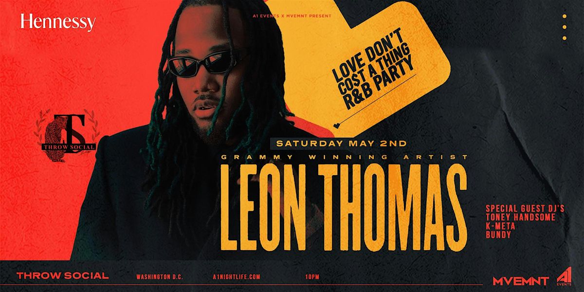 Get ready for an unforgettable night with LEON THOMAS hosting the ultimate R&B Experience! This in-person event is all about smooth vibes, great music, and good times. Whether you're a die-hard R&B fan or just looking to chill and groove, this is the spot to be. Don’t miss out on the soulful sounds and good energy — come through and feel the music live! Special guest DJ Sets by K-Meta, Bundy and Toney Handsome